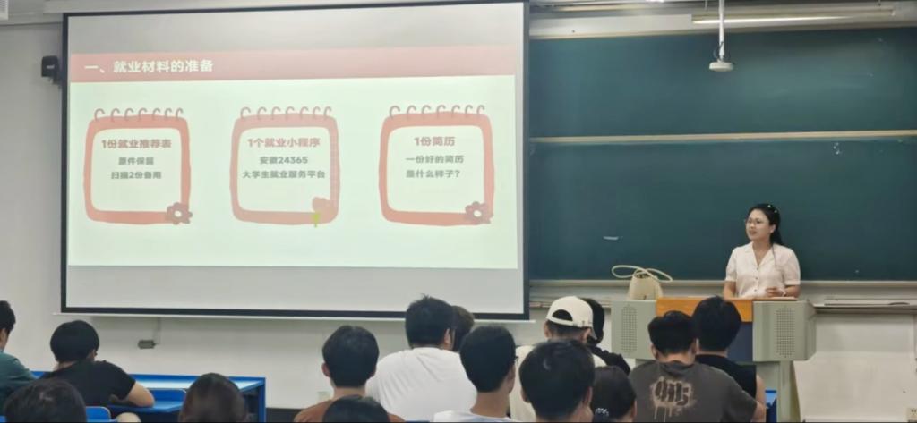 輔導(dǎo)員謝永芳結(jié)合當(dāng)前就業(yè)市場形勢與學(xué)院學(xué)科特點(diǎn),強(qiáng)調(diào)了早準(zhǔn)備、早規(guī)劃、早行動的重要性。在就業(yè)材料準(zhǔn)備環(huán)節(jié),提出了備好“三個1”的核心建議:精心打磨的1份簡歷,學(xué)校官方認(rèn)證的1份就業(yè)推薦表,掌握1個就業(yè)小程序。通過對這“三個1”的規(guī)范解讀與實(shí)例分析,輔導(dǎo)員幫助同學(xué)們明晰了求職材料準(zhǔn)備的關(guān)鍵要點(diǎn)。