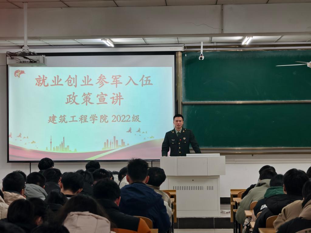 2026年1月7日,建筑工程學院在秀山校區(qū)東教北103面向2022級畢業(yè)班學生舉辦2026年大學生參軍入伍政策宣講會。會議由畢業(yè)班輔導員金晶、陳奎組織,旨在幫助畢業(yè)生了解入伍政策、增強國防意識、激發(fā)報國熱情。