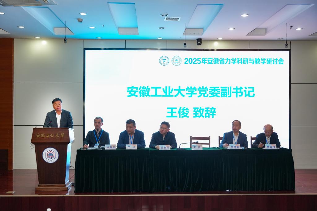 王俊代表學(xué)校對(duì)各位專家學(xué)者表示誠(chéng)摯歡迎,介紹了學(xué)校在力學(xué)相關(guān)學(xué)科領(lǐng)域的辦學(xué)成果。他指出,力學(xué)是認(rèn)識(shí)自然、改造世界的“基礎(chǔ)之基”,是連接基礎(chǔ)科學(xué)與工程技術(shù)的“橋梁之梁”,更是支撐國(guó)家科技自立自強(qiáng)、賦能產(chǎn)業(yè)轉(zhuǎn)型升級(jí)的“關(guān)鍵之鑰”。本次研討會(huì)聚焦力學(xué)科研與教學(xué)前沿動(dòng)態(tài),為省內(nèi)力學(xué)領(lǐng)域?qū)<覍W(xué)者搭建了交流合作的優(yōu)質(zhì)平臺(tái),期待各位專家通過(guò)思想碰撞凝聚發(fā)展共識(shí),為安徽省力學(xué)學(xué)科發(fā)展注入新動(dòng)能。