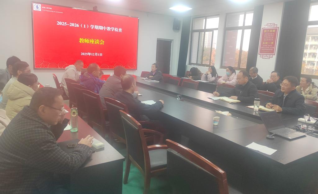 為深入了解教學狀況,提升教學質量,12月1日下午,學院在建工北樓310組織召開了2025-2026(1)學期期中教學檢查教師座談會,學院黨委書記、學生院長、教學院長、院督導組全體成員、各專業(yè)教師代表、教學秘書等20余人參加了座談會。座談會由副院長呂忠主持。