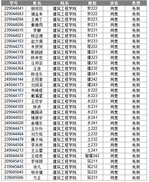 根據(jù)安徽工業(yè)大學(xué)《關(guān)于進(jìn)一步貫徹落實(shí)學(xué)生體質(zhì)健康測(cè)試工作的實(shí)施意見》(教學(xué){2024}114號(hào))的要求,由學(xué)生本人提出申請(qǐng),校體育部審核,現(xiàn)將建筑工程學(xué)院2025-2026學(xué)年體測(cè)免測(cè)情況進(jìn)行公示。